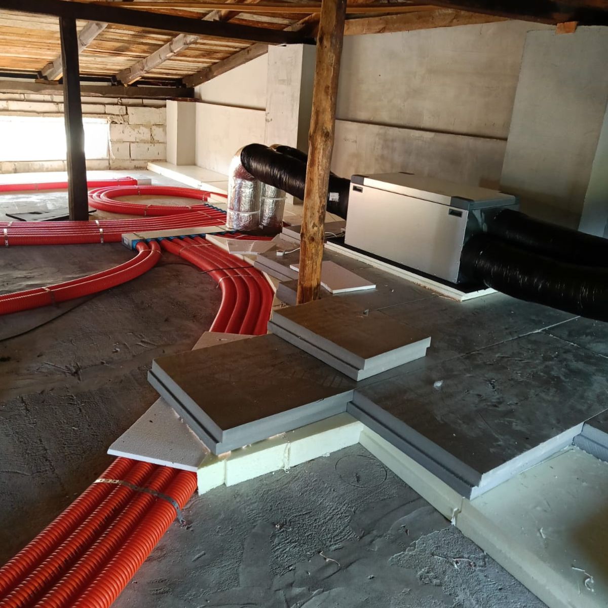 Zakończyliśmy pierwszy etap prac nad instalacją rekuperacji w Gierałtowicach. 📍 Przygotowanie instalacji pod jednostkę Vallox 119 CFi