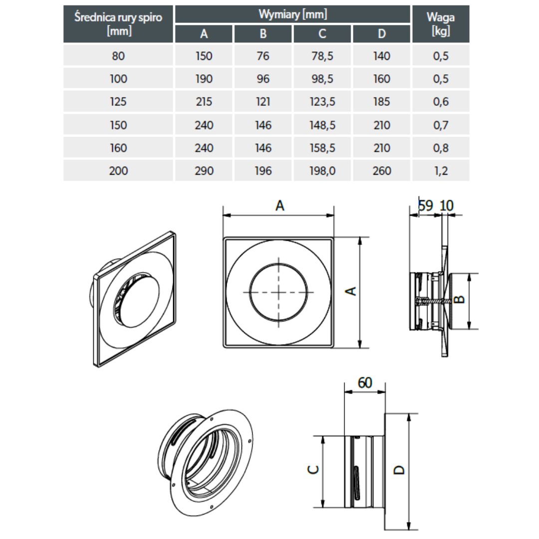 • Poprawia estetykę – zasłania otwór wentylacyjny, dzięki czemu instalacja wygląda schludnie i dyskretnie.