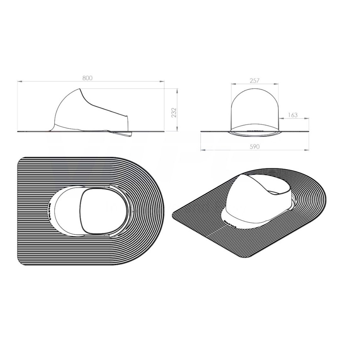 Przejście dachowe jest przeznaczone do dachów bitumicznych i montowane pomiędzy dwie warstwy pokrycia dachowego, co zapewnia szczelność i trwałość instalacji. Jego wymiary to 590 mm szerokości i 800 mm długości.