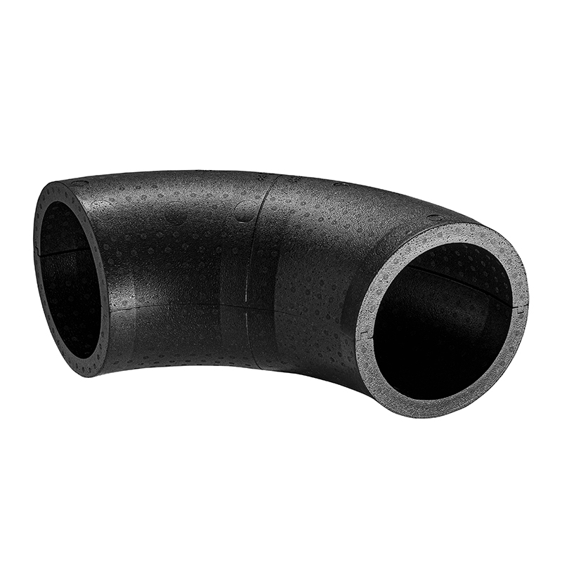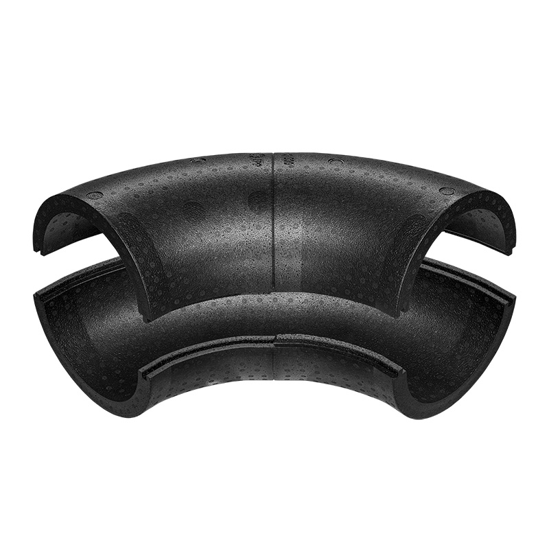 Spieniony polipropylen (EPP) zapewnia wysoką izolacyjność cieplną i akustyczną, niską masę oraz odporność chemiczną i mechaniczną. Dzięki temu kolano ogranicza mostki cieplne i hałas oraz wspiera cichą, energooszczędną pracę instalacji.