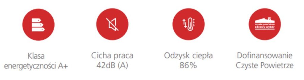 Model dostępny jest w wersji prawej z możliwością łatwego przestawienia na lewą. HERU 160 S objęty jest 5-letnią gwarancją producenta i spełnia wymogi programu Czyste Powietrze.