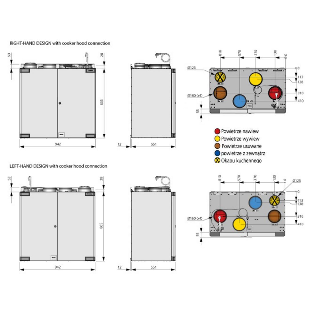 HERU 160 T to nowoczesny rekuperator ścienny z górnym podłączeniem, przeznaczony do domów, mieszkań i budynków użytkowych. Sprawdza się zarówno w pomieszczeniach ogrzewanych, jak i nieogrzewanych, dzięki solidnej izolacji i odpornej obudowie (klasa korozyjności C3).