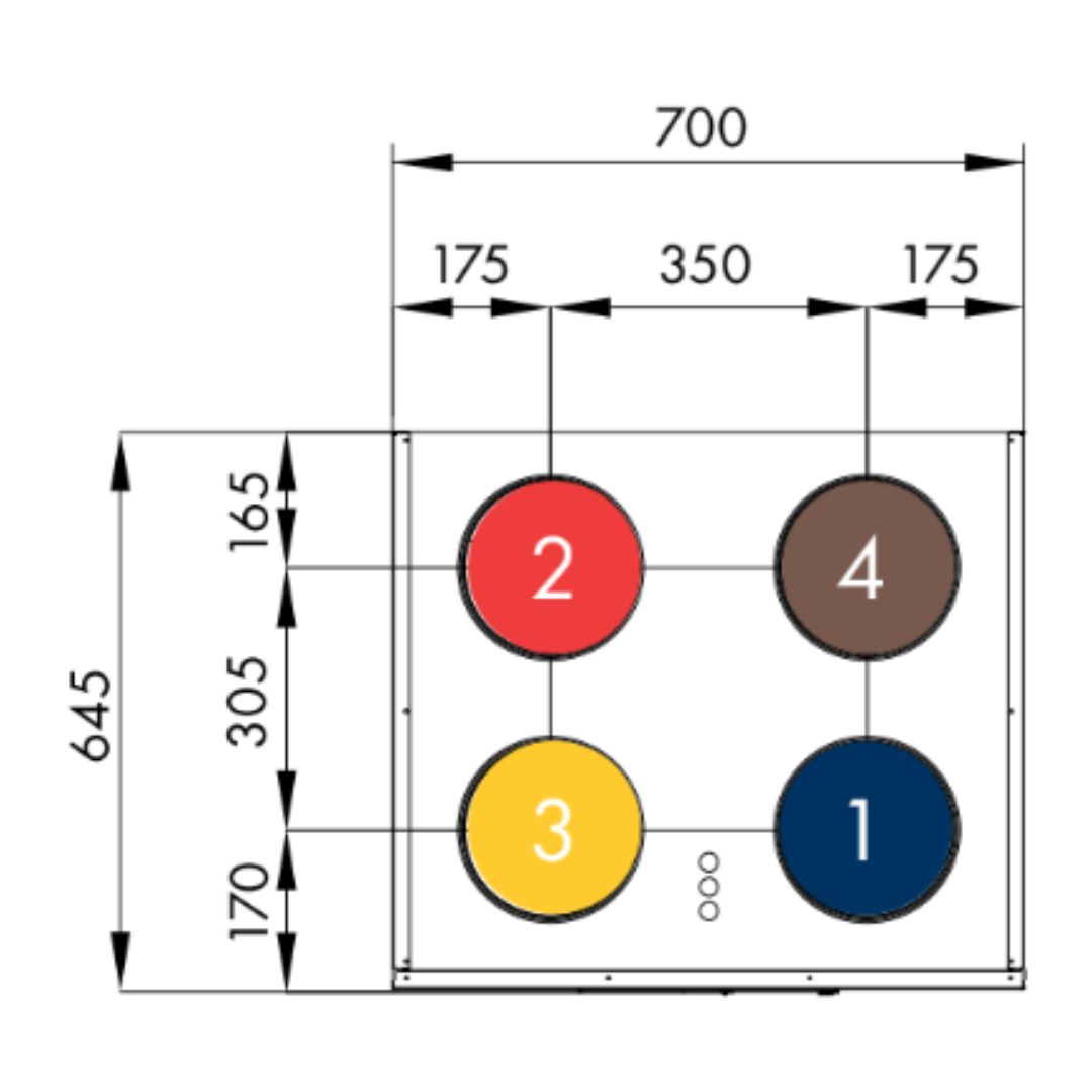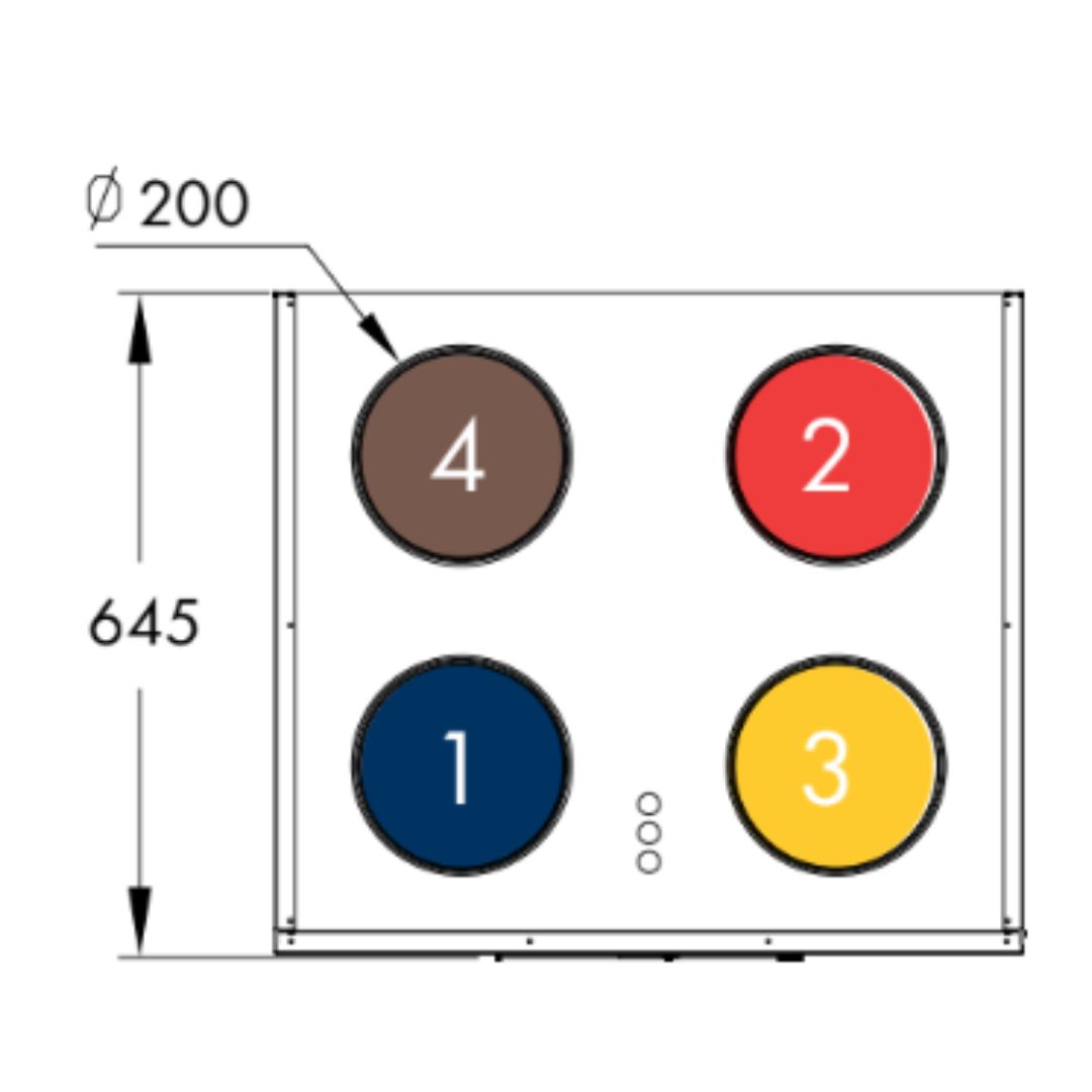 Średnice kanałów przyłączeniowych 4 x 200 mm