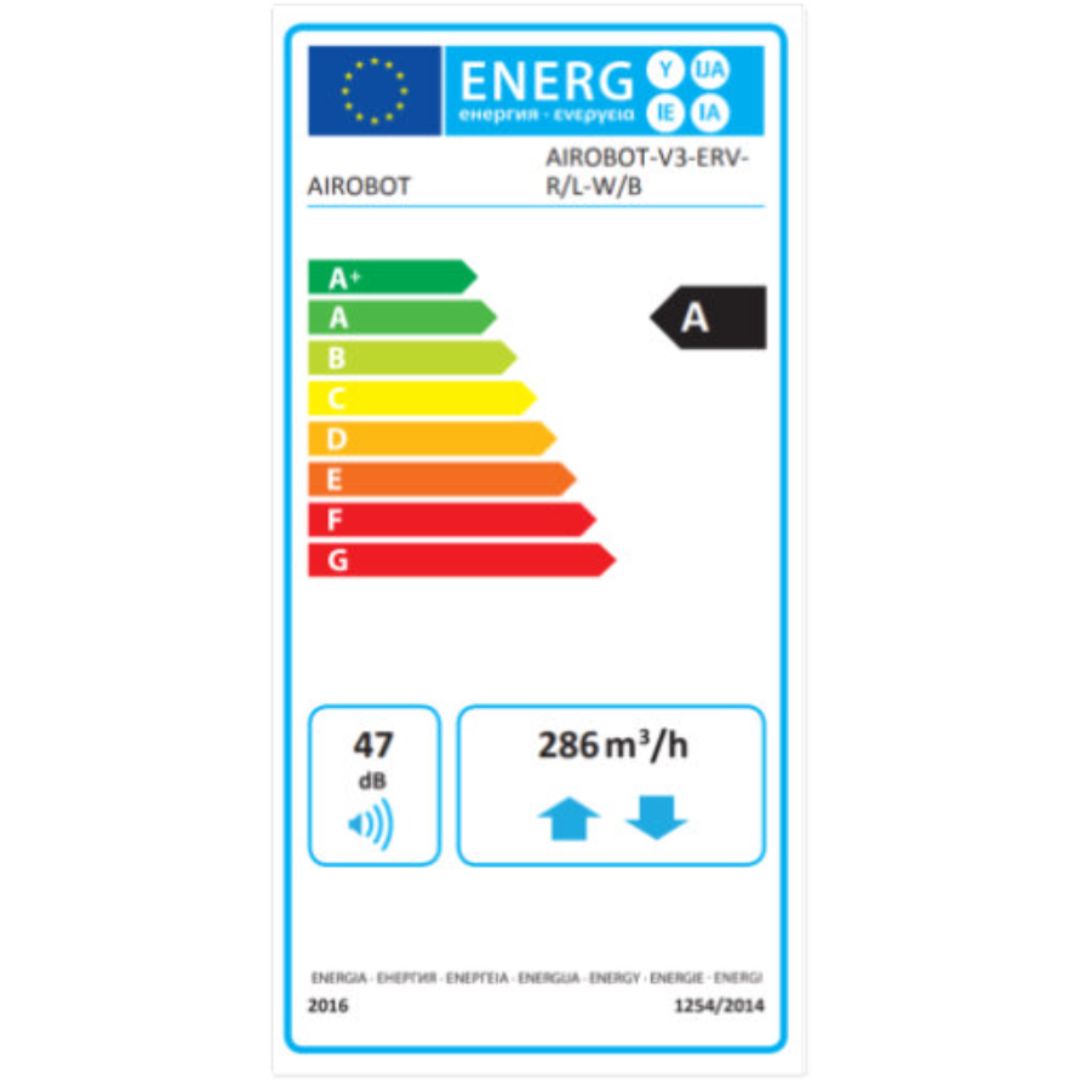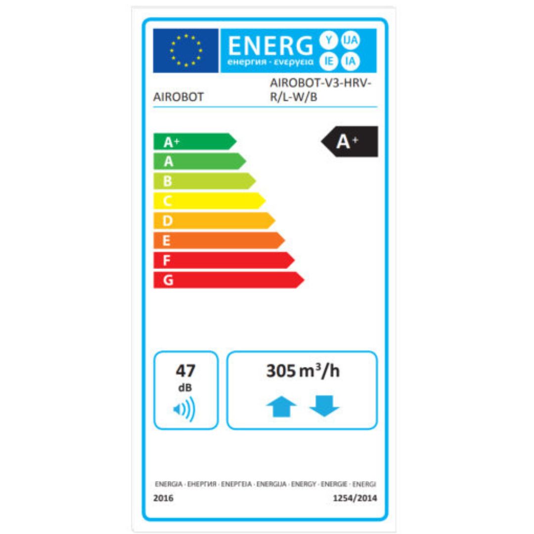 – AIROBOT V3 HRV (wydajność do 305 m³/h przy 100 Pa) z klasycznym odzyskiem ciepła,