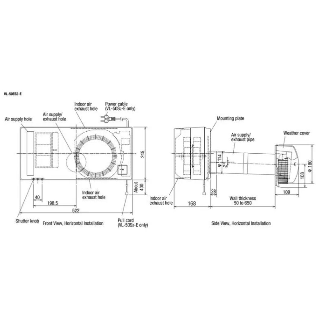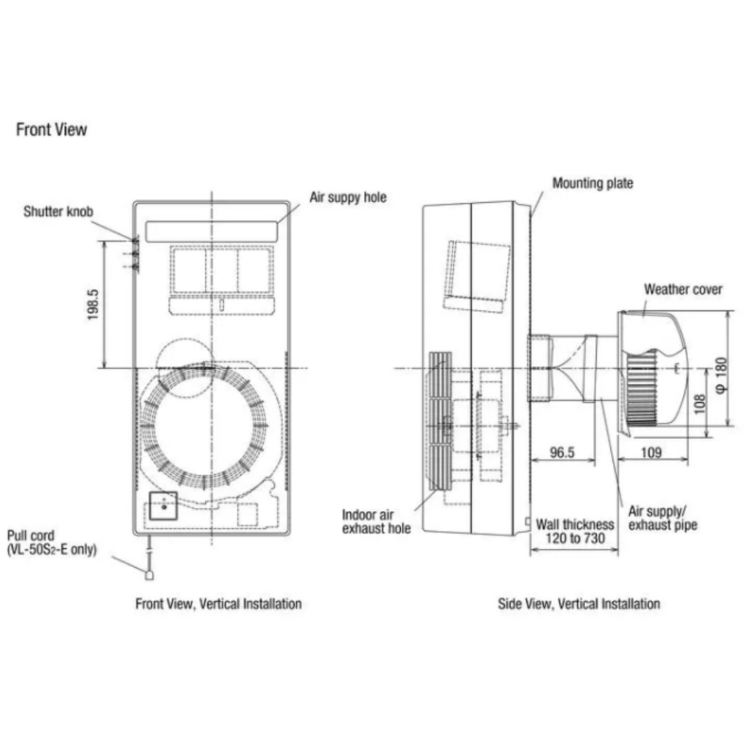- VL-50ES2-E (sterowanie za pomocą włącznika (regulatora); włącznik w zestawie)
