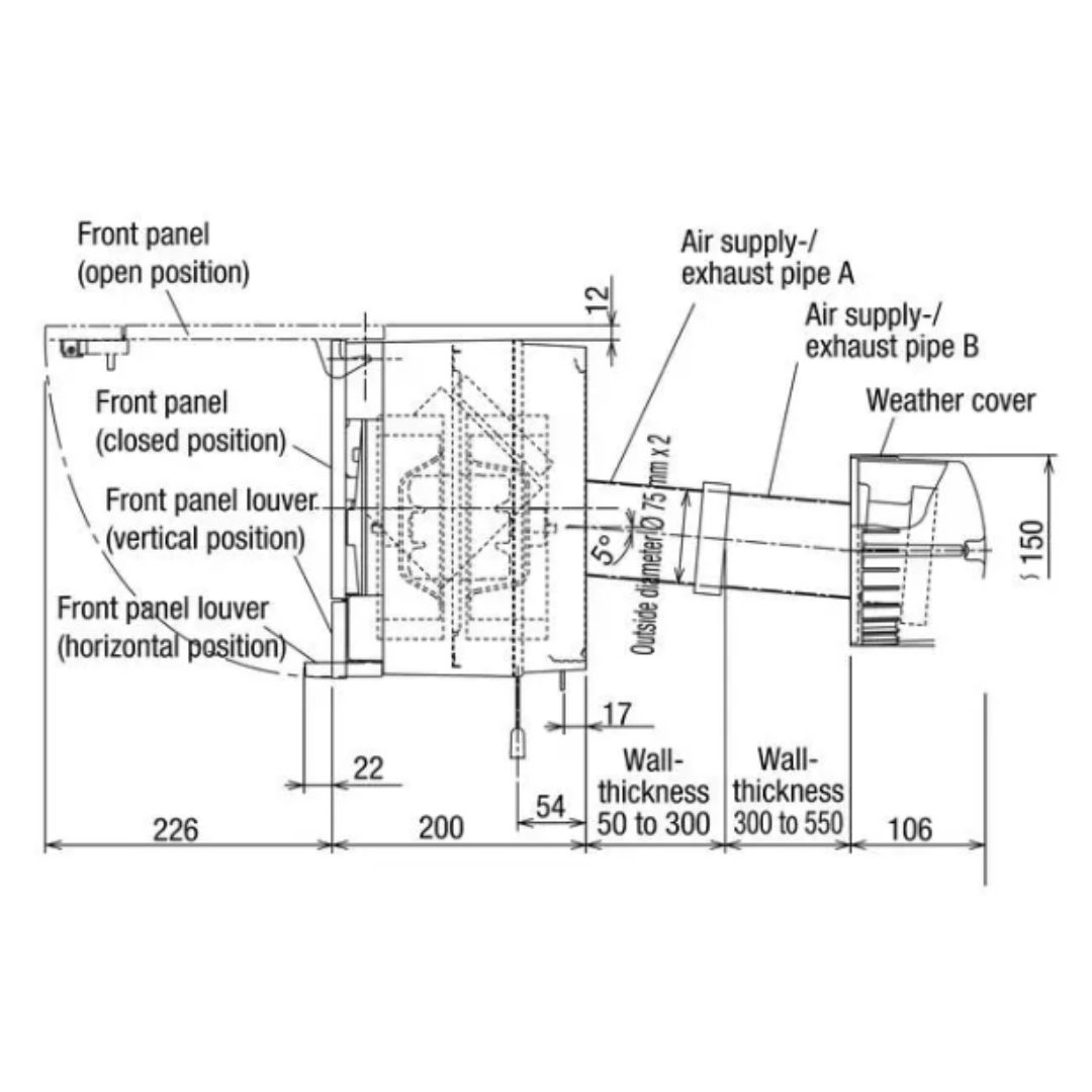 Wymiary rekuperatora ściennego mitsubishi LOSSNAY: