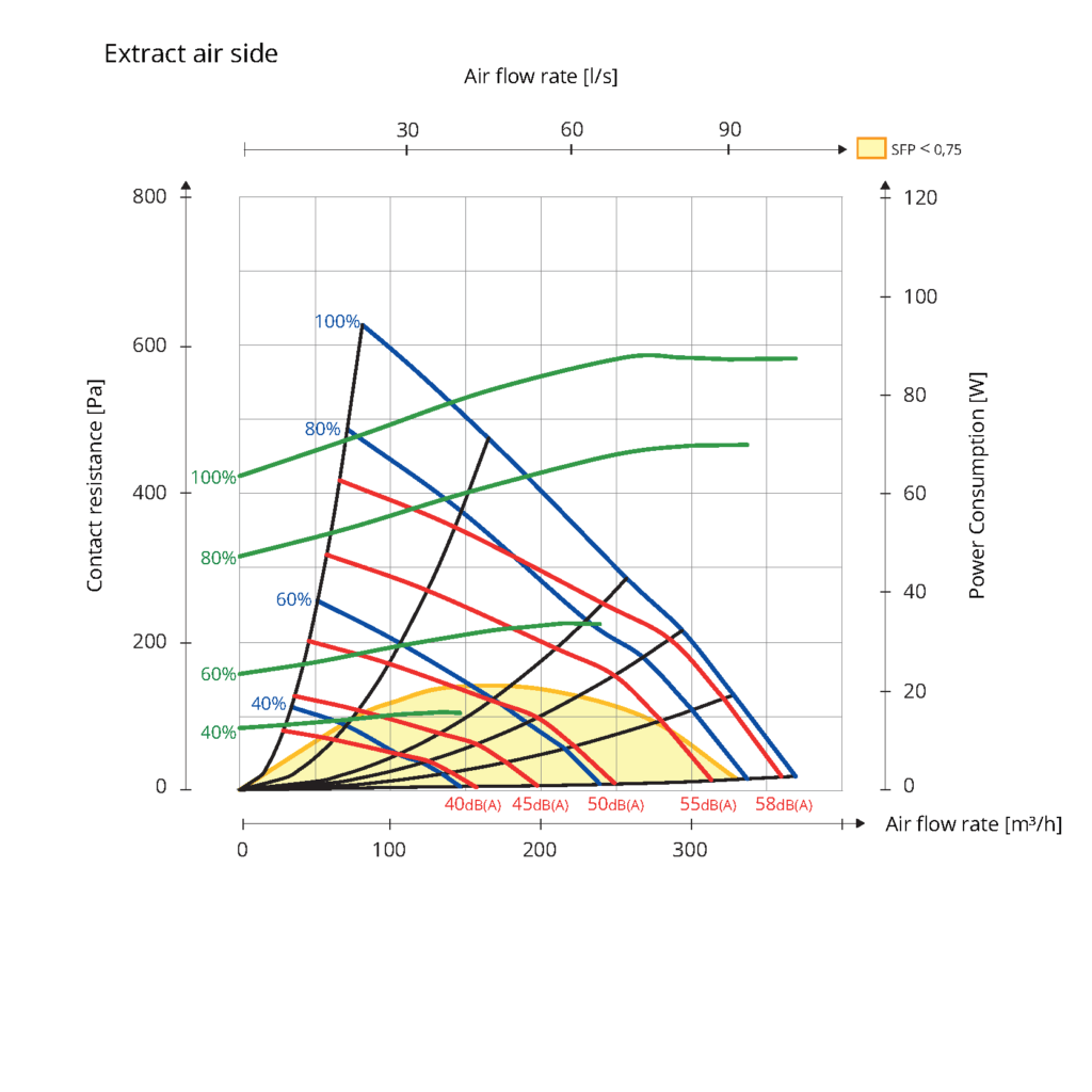 Diagram wydajności rekuperatora Nordic Flexit S2
