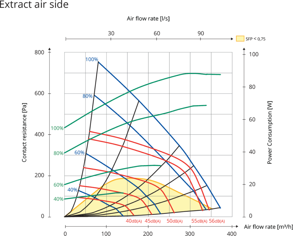 Diagram wydajności rekuperatora Nordic Flexit S3