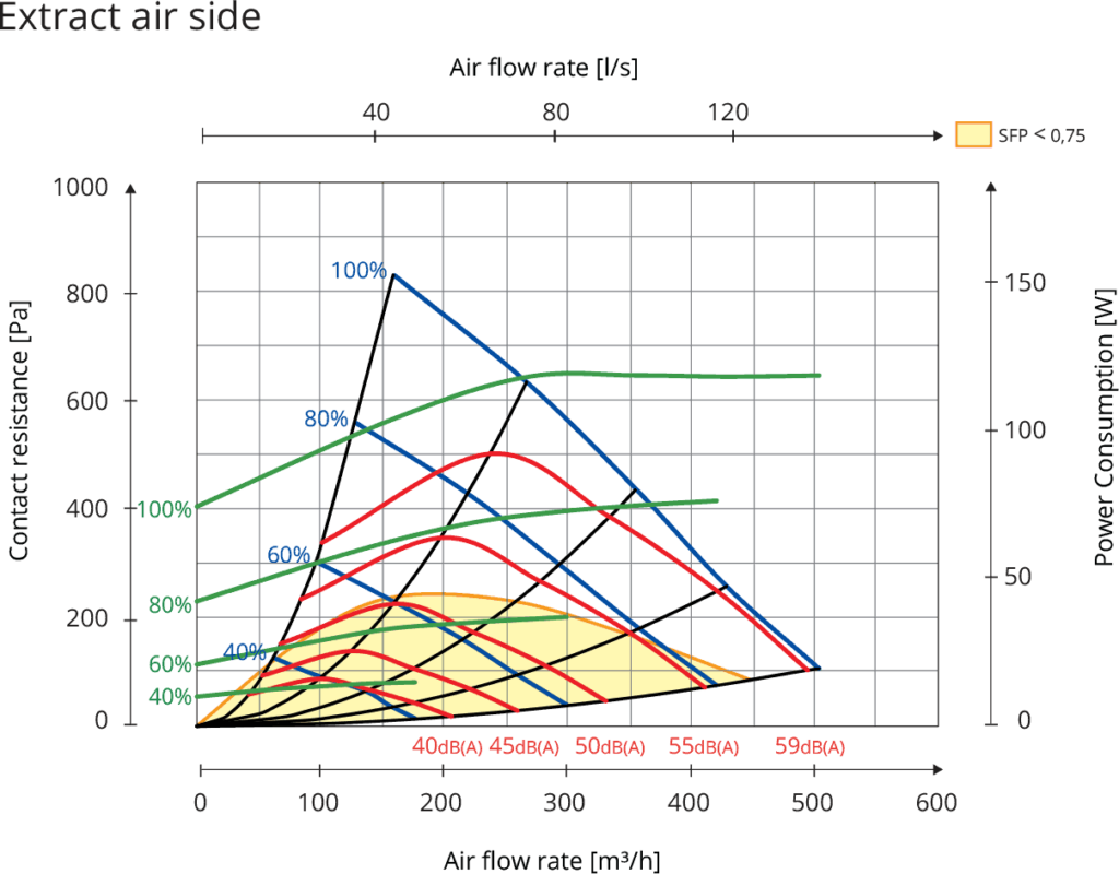 Diagram wydajności rekuperatora Nordic Flexit S4